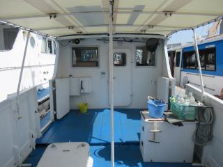 写真のように船内やデッキ周りがとても広く、とても使い勝手が良い構造です。