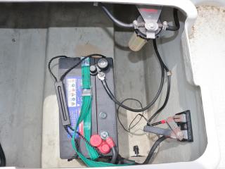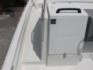 ◆アフトデッキのトランサム側ハッチ左舷側には燃料タンク、右舷側にはバッテリー及びメインスイッチがあります。