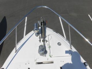 バウデッキへはフロントガラスの中央部を開放して運転席からも移動できます。
