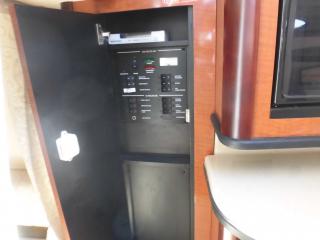 リアオープンデッキの床面ハッチ下はエンジンルームでハッチは電動で上下できます。