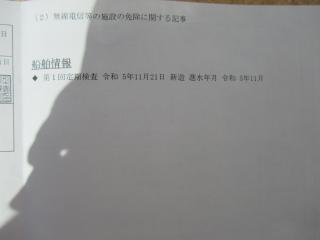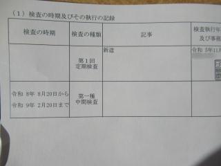 ・第1回定期検査(検査執行日)新造:令和5年11月21日