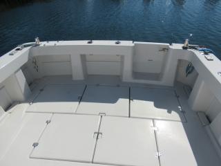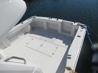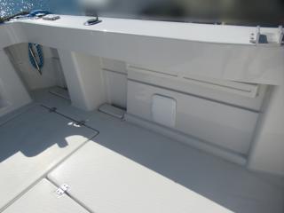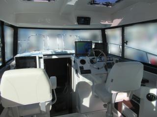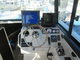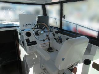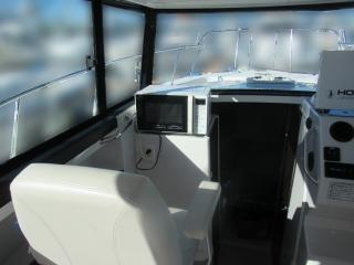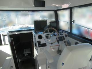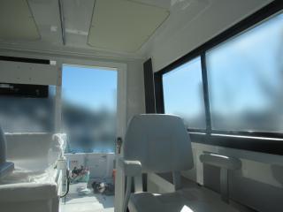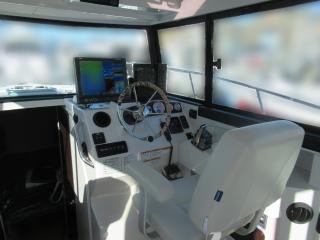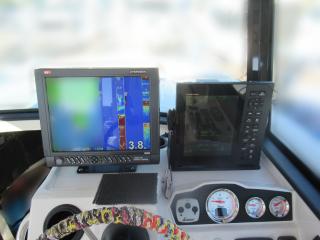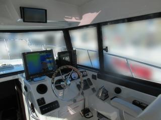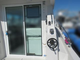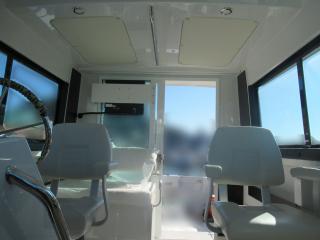 オプションのアフトステーション設置で、2か所操船可能となります。操船しながらのキャビン内にある魚群探知機モニターにて釣りを楽しめるのも魅力の一つです。