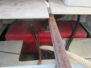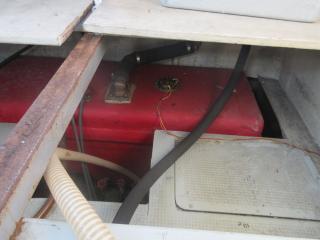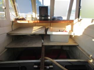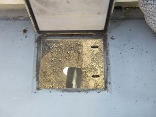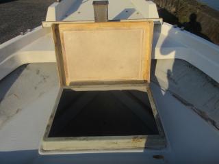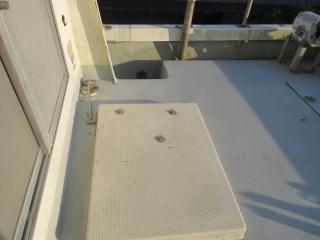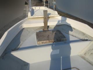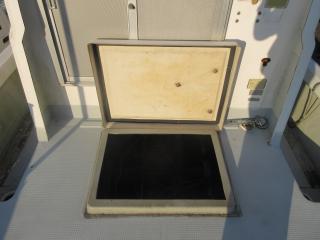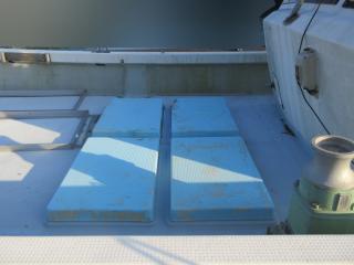 ◆アフトデッキはキャビンのリアドアの前に物入と艫にドライブの覗きハッチが左右にあります。
