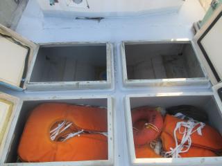 ◆フロントデッキキャビン前に4間の物入及びイケスがあります。