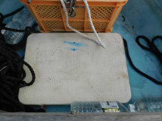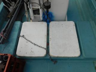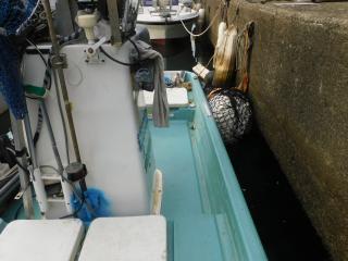 デッキ中央にイケスがあり、現状はストレージとして使用しております。