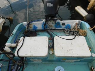 こちらの艇は本来、養殖などの内海での漁業に使用するヤマハの和船ですが、広くフラットなデッキと安定性が優れた特徴を生かし、湾内での釣りなどを楽しむ艇として使用していた、W-20CF―5(AL7-A)2005年式です。