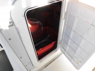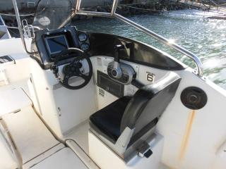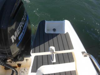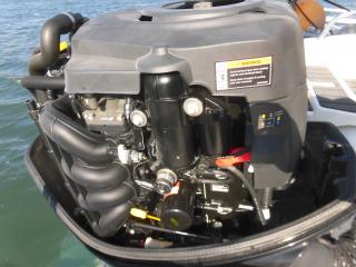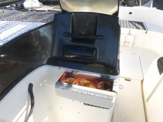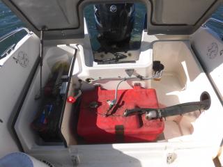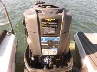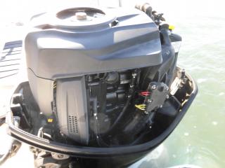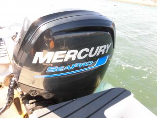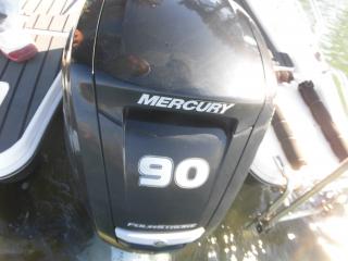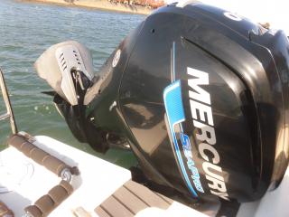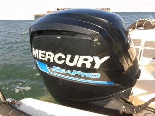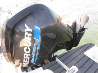 エンジンはマーキュリー製MF90XRI-SP(4スト90馬力)搭載でMAXスピードは約35ノット程です。使用時間は僅か177時間程と少なく大変に燃費のいいエンジンです。