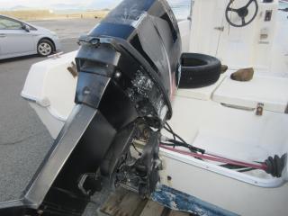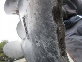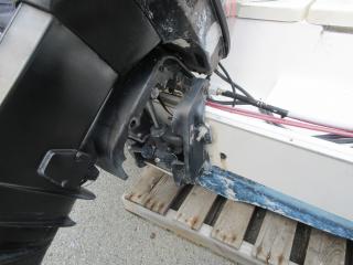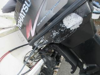 ◆エンジンはキャビテーションプレートの下、吸水口の前面あたり破損していますが、オイル漏れは見えません。