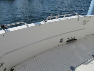 アフトデッキにはデッキシャワー、海水ウォッシュダウン、デッキライト、陸電設備、スイミングステップ、スイムラダーなどの装備があります。