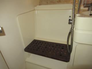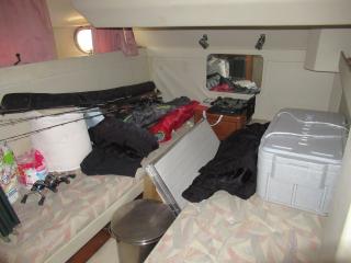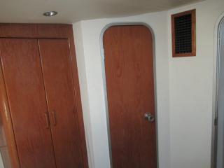ギャレーを過ぎて前方に進むとまず右舷側にゲストルームがあります。また、左舷側にはゲスト用のシャワー付きのトイレの装備があります。そのまま前方に進みますとオーナーズルームになります。オーナーズルームにもシャワー付きのトイレの装備があります。