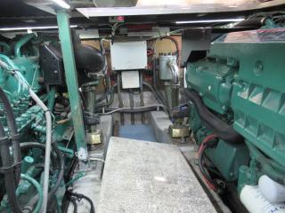 エンジンはボルボペンタ社製TAMD63 270馬力(最大370馬力)ディーゼルエンジンが2機のシャフト艇です。メンテナンスがしっかり行われている為、とても綺麗なエンジンです。