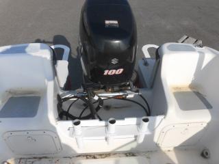エンジンはスズキ製DF100(4スト100馬力)搭載でMAXスピードは約28ノット程です。使用時間は僅か200時間程と少なく大変に燃費のいいエンジンです。