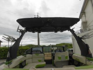 ウェイクタワーにはビミニトップ・ボードラックも艤装しています。ビミニトップは雨天時や日差しの強い日には助かるアイテムです。