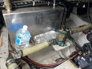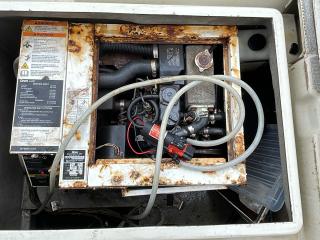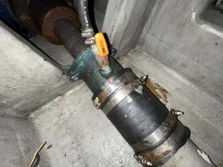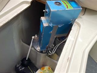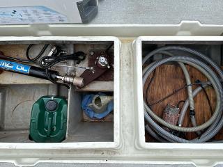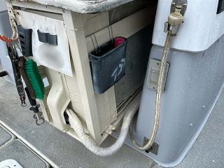 室外機の横には清水ホースがあります。タンクは100リットル。