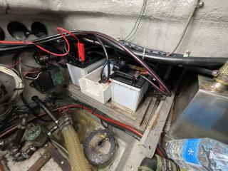SEA-LEDy集魚灯を両サイドに3個づつセット、ポータブル電源で点灯させます。