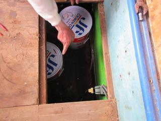 ◆エンジン室には操舵室と後方の部屋の2か所から入れます。
