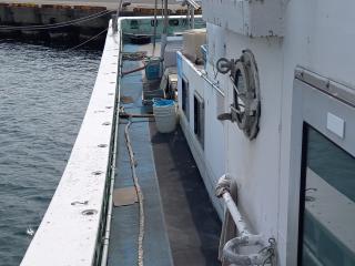 通常は遊漁船として使用していますが、港湾整備の潜水作業員を乗せてサポート船としても活躍しています。