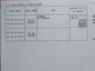 ・第5回定期検査(検査執行日):2022年(令和4年)9月6日
