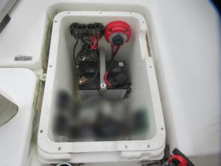 ※アフトデッキ(左舷側)ストレージハッチを開くとメイン電源とバッテリーが有ります。