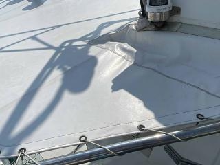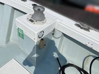 アンカーウィンチ(24V750w)はFRPで四角に囲って見栄え良くしてメンテしやすいハッチ付き。