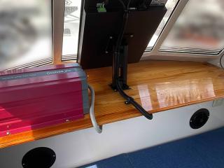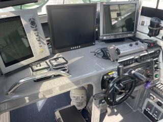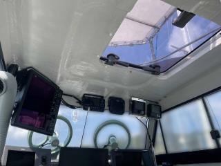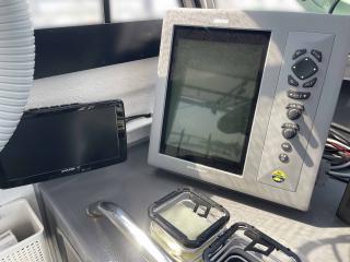 オートパイロット、オートスラスターを設置。ソナーの純正モニターは見づらかったので、輝度が鮮明なモニターを設置されてます。