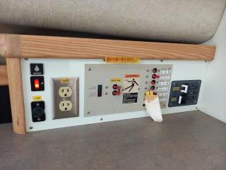 装備としてはギャレーにはシンク、電子レンジ、電気コンロ、冷蔵庫があります。また船内にはエアコン、手動式トイレ等があります。