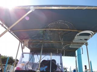 ビミニトップオーニングが設置されているため、日差しが強く感じるときなど状況に応じ使用できるところは大きなポイントです。