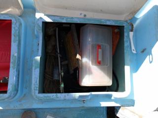 収納庫はバウに1つ、アフト側に3カ所(バッテリーと燃料タンク含む)設置されています。