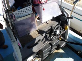 コンソール周りには、標準の計器以外にはHONDEX製HE-82Di GPS魚探が装備されています。