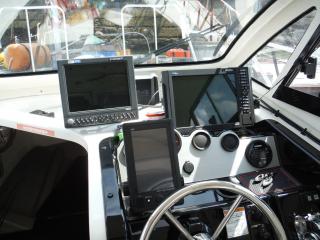 セカンドステーション、レーダー、ソナー、GPS魚探、電動リール電源、デッキウォッシュ、LEDデッキライト、インバーター、ダンパー付操縦シートなど充実装備です。