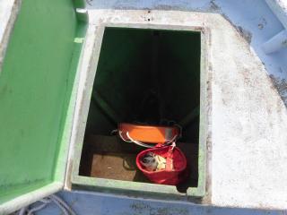 スターンロッカー右舷側はバッテリースペースで左舷側は燃料タンクスペースです。