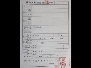 ◆この船は漁船登録船です。この船の正確な情報をお伝えする為に動力漁船登録票及び日本小型船舶検査機構(JCI)の船舶検査証書と検査手帳を個人情報を伏せた状態で掲載しています。造船場やエンジンの型式、定員、用途、登録上の船体寸法、航行区域、航行上の条件、進水年月日、検査の状況などをご確認下さい。