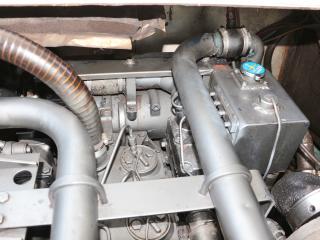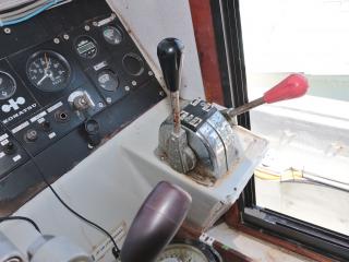 ◆エンジンはコマツの過給機付き6気筒ディーゼルエンジン、EM-655A-Aを搭載しています。検査手帳に記載されている連続最大出力は391PS/2130rpmです。なお、取材時のアワーメーター表示は約8423時間でした。
