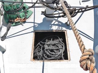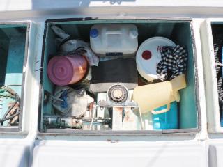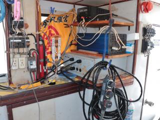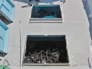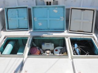 ◆ブリッジ前には強制循環式のイケスが装備されています。(使うにはホースの取り付けが必要です。)またトモのブリッジ後方左舷側には普通のイケスも装備されています。