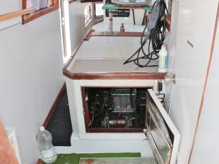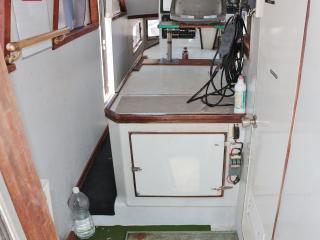 ◆操船部の左舷側から階下のキャビンスペースにアクセスできます。キャビンスペースは大人が数人横になって寝られる程度の広さがあります。