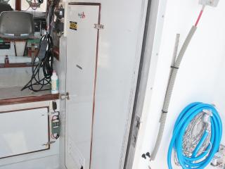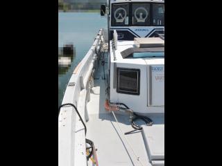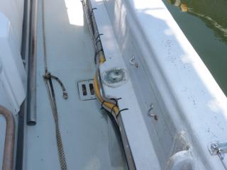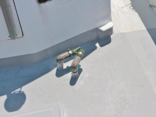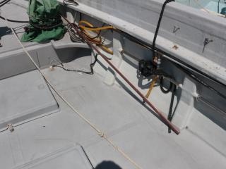 ◆トモの入口右舷側には清水が出る蛇口があります。また、この上に微速レバーもありますので3連リモコンを引っ張ってくればここでも操船可能です。