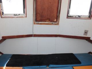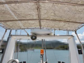 ◆この艇の特徴はフライングブリッジ(FB)付きという点です。FBのシートは2脚です。FBにはオーニングも付いています。
