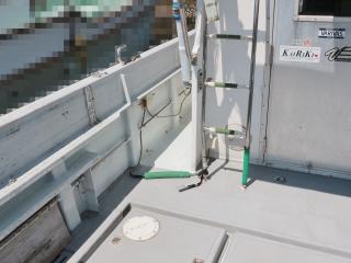◆デッキは全体的に大きくブアついているような箇所は無いように見受けられました。また塗装が激しく剥げてFRPがむき出しになったような箇所も無いように見受けられました。