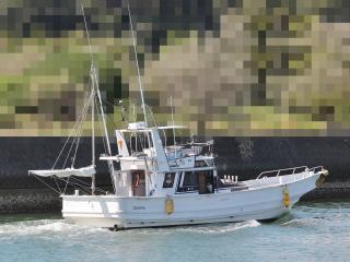 ◆進水は平成1年7月の筒井ボート製のフライングブリッジ付き45フィートの個体です。船は四国内の港に係留保管されています。