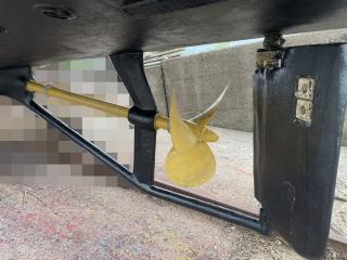 ◆取材時は係留状態でしたので船底の確認はできておりませんが、ドックされた際の写真をオーナー様にご提供いただいて写真No,11~14に掲載しております。なお、シャフトはブラケット保持でシューピース付きです。また、シャフトはSUS304でΦ70mmです。
