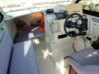 状態◆入口左舷側には3名掛けベンチシートを装備しており、リアドア付きの船内キャビンですので、冬季シーズには嬉しい仕様かと思われます。