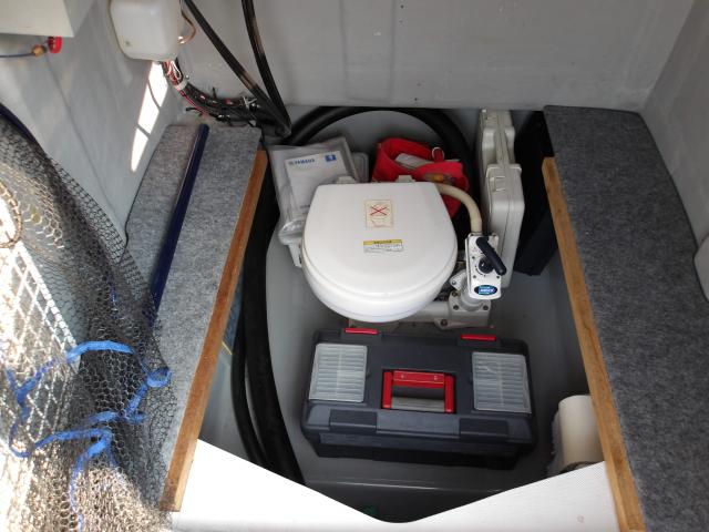 21F艇ですがマリントイレを装備されています。キャビン前から出入り出来るのも扱いやすいと思います。