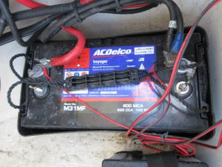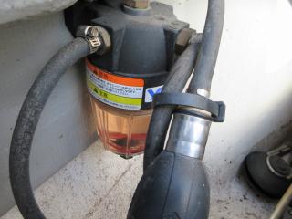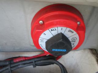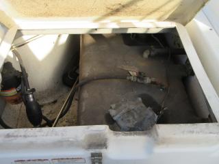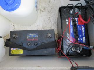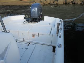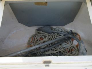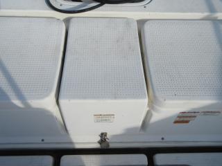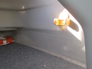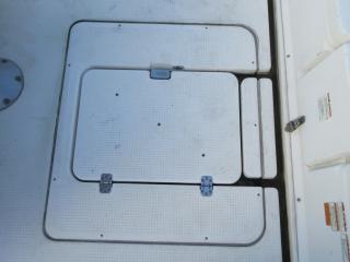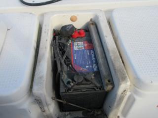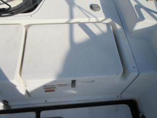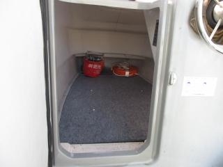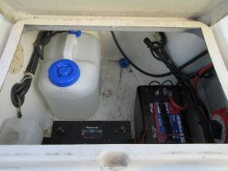 スターンロッカー中央はサブバッテリー、右舷側にはメインバッテリースペース、左舷側は燃料タンク(約75L)があります。