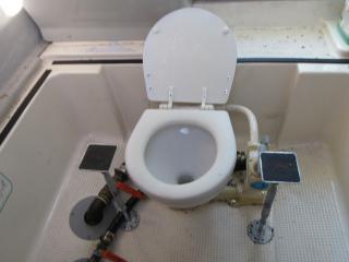 カディ(小さなキャビン)内は大人が3人くらい寛げるスペースがあり手動マリントイレが追加艤装されているので子供や女性が乗船しても安心です。