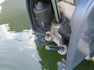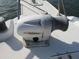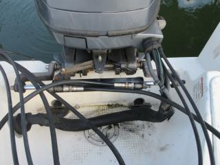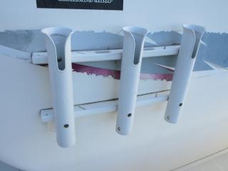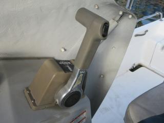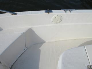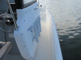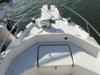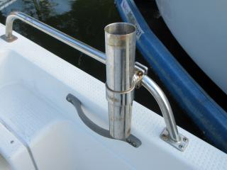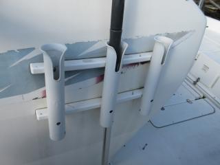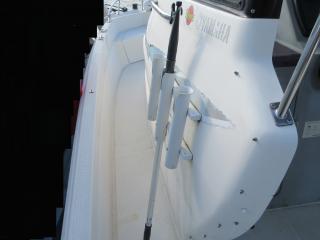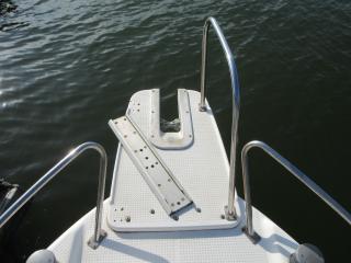バウスプリットの上にエレキ用の取付けプレートが有るので左舷側のバウパルピットが付いておりません。エレキは付属いたしません。