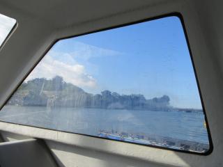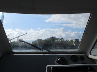 キャビンは前面・左・右の窓の面積も大きく海面の視認性も良好です。現在は左右の窓がやや紫外線劣化しております。見えない程ではありません。