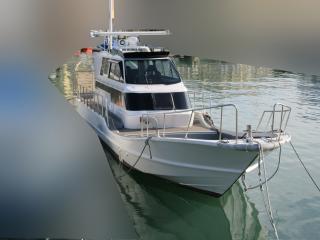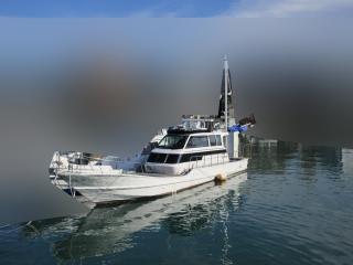◆船底はサーフェイス型、定員12名、限定沿海、巡航38ノット、最高45ノットの高速遊漁船です。