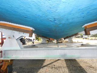 船体状態は現在上架しておりますが、海上係留艇であるためハルやガンネル廻りに擦り傷、補修跡があります。