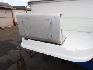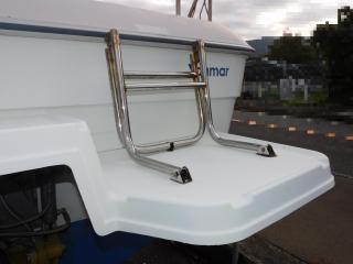 トランサムには左右にステップがあり、右側にラダー、左側に補機船外機用のブラケットが装備されております。