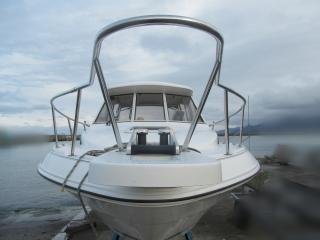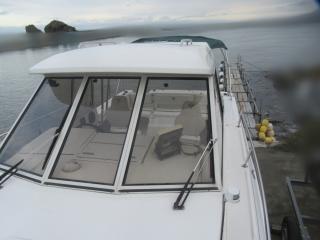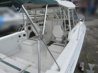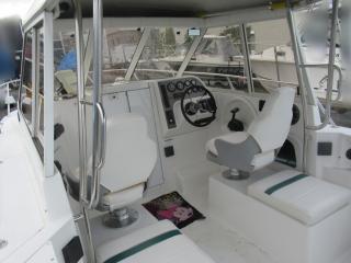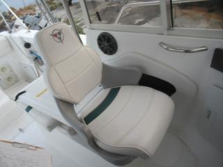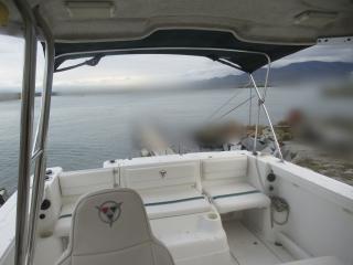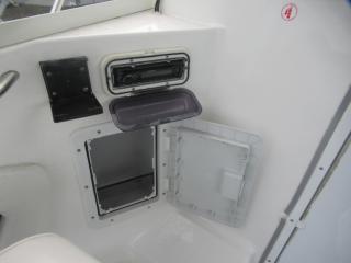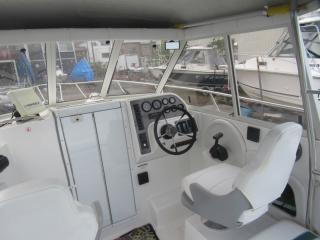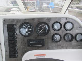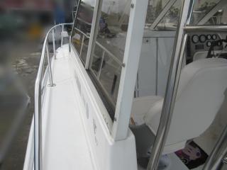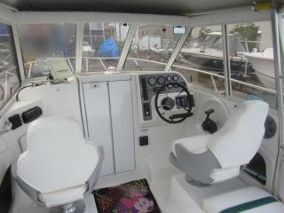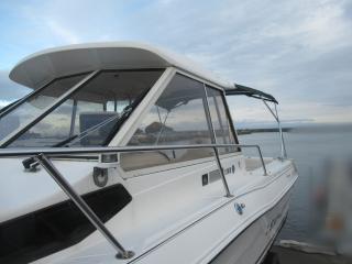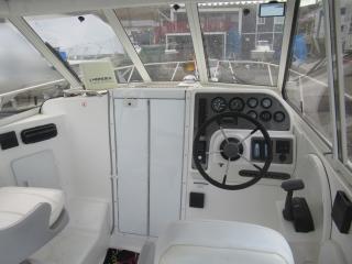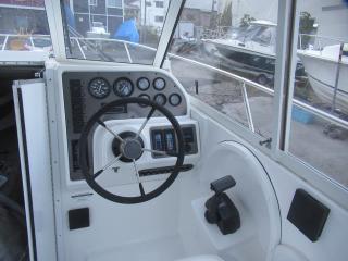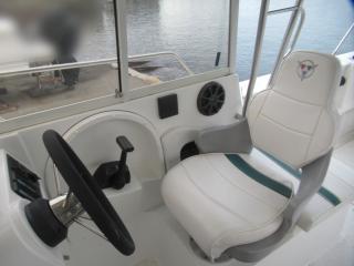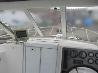 コクピット(操船部)は計器類が見やすく配置され、フロント・サイドウインドウは開放的で操船時の視界も取りやすく、GPS魚探2台が有り(GPSと魚群探知機)で操船時、フィッシング時も見やすい配置となります・